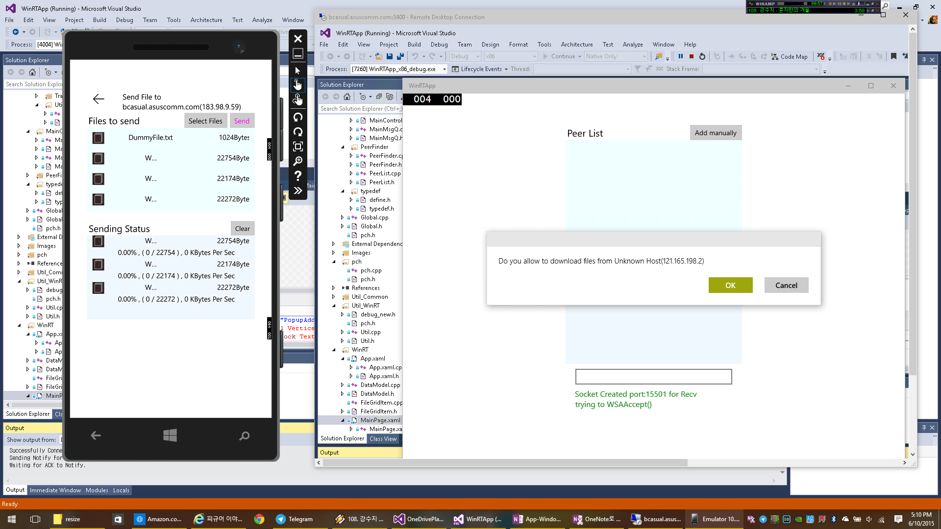 1. Windows Phone 10 <-> Windows 10 Desktop UWP <-> win32 Console Application 간 파일전송앱.