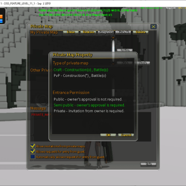 당초 PvP맵을 구현계획을 세웠을땐 개인맵 기능과 분리할 생각이었다. 하지만 PvP맵이라고 해도 인스턴스 맵인데 현재 인스턴스맵 기능은 개인맵에서만 사용한다. 또한 개인맵에서 만든 복셀지형을 PvP맵의 지형으로 사용할 경우 비동기 로딩이 필요하다. 비동기 로드 기능은 개인맵에서 이미 구현되어있다. 겹치는 기능이 너무 많고 그 기능의 대부분은 개인맵에서 구현해놨으므로 결국 개인맵 기능의 일부로서 PvP맵을 구현했다. PvP맵에 입장할때도 권한을 체크하는게 필요한데 … More Game Dev – Voxel Horizon – 개인맵 기능 개선. PVP맵 추가