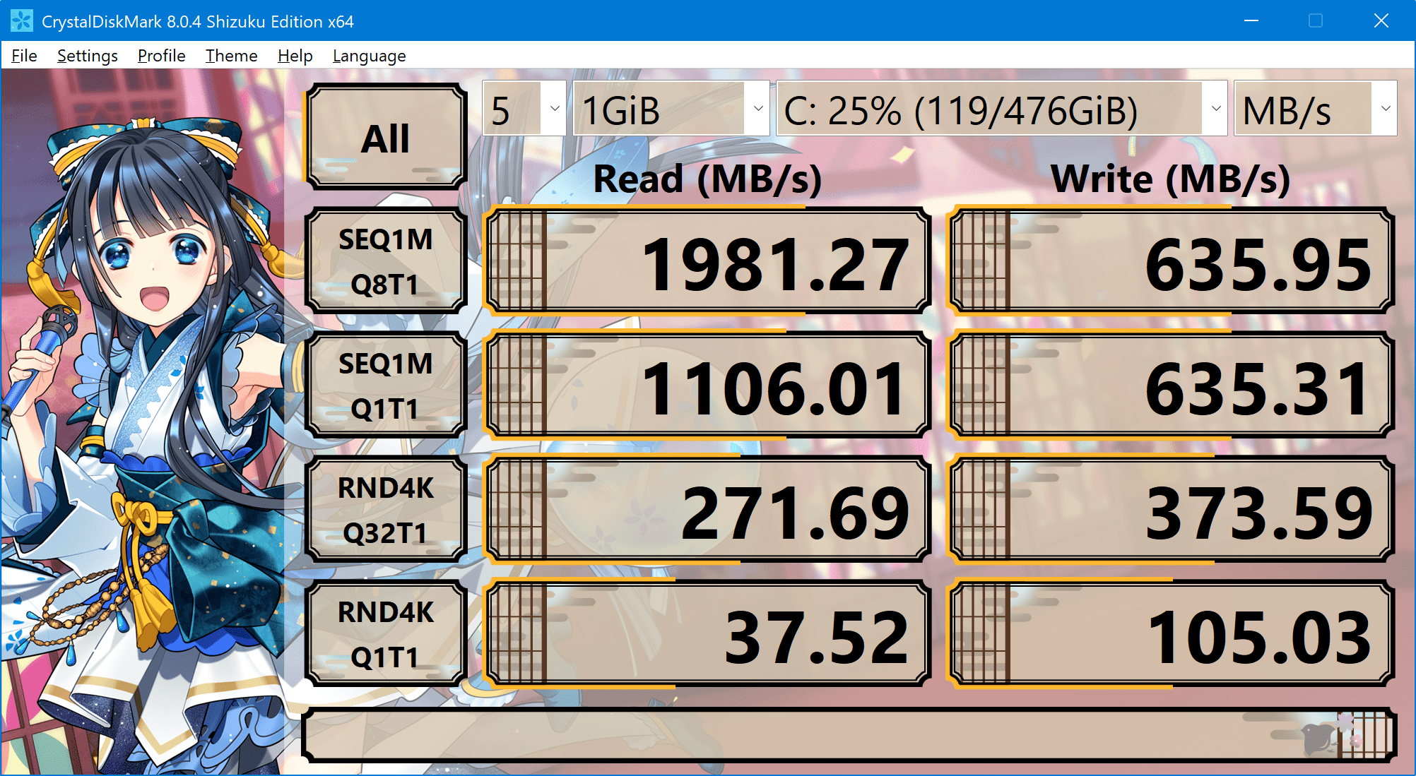 순차억세스에서는 압도적인 성능을 보여준다. 반면 랜덤억세스에서는 2018년 출시된 서피스북2보다도 나쁜 성능을 보여준다.
