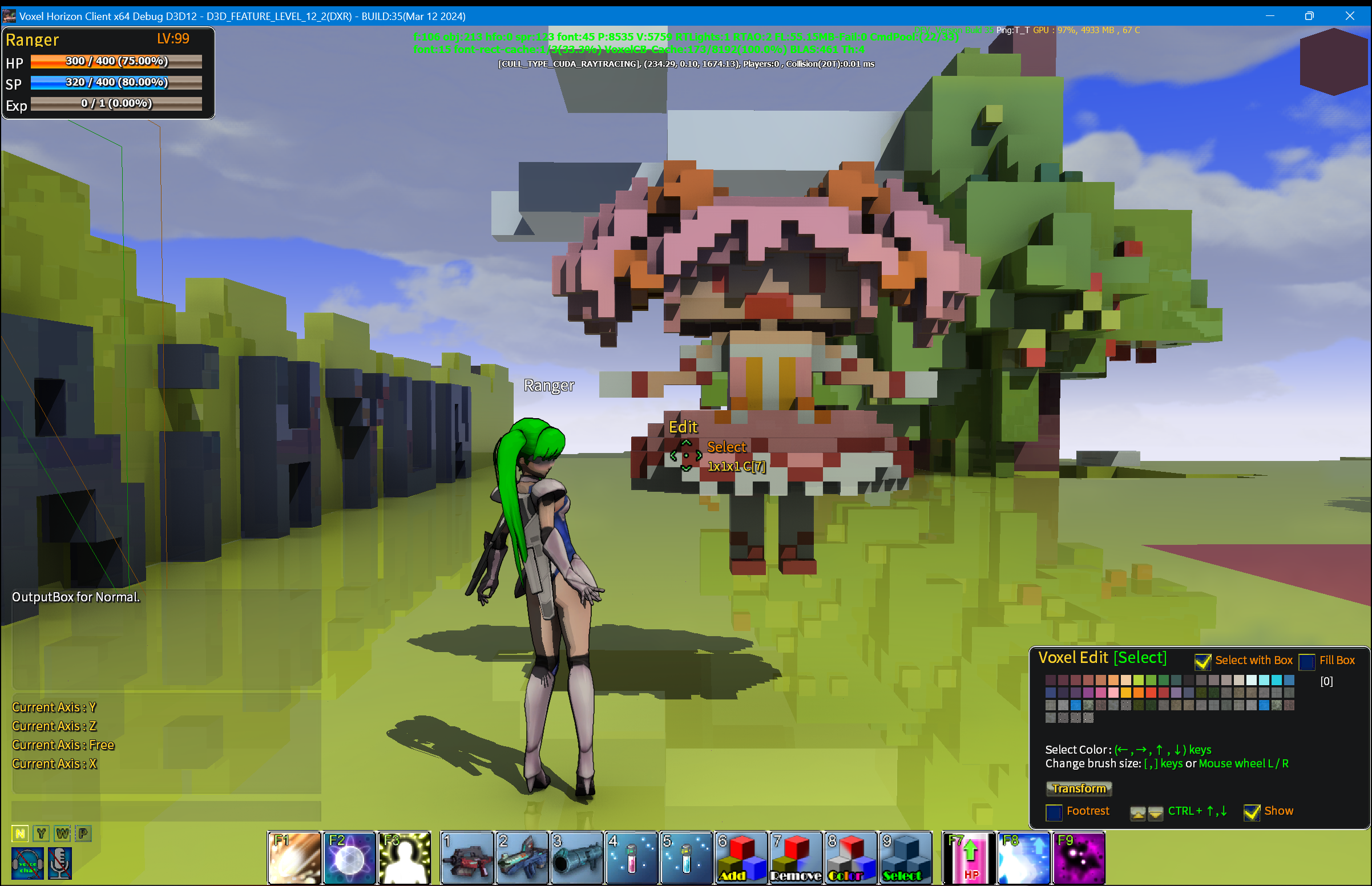 그래서 복셀 편집으로 구조물을 만들고 그걸 축소해서 소품으로 쓰면 되겠다 싶어서 이런 기능을 만들었다.일단 엔진에 기능을 추가했고 기본적인 기능은 잘 작동한다.